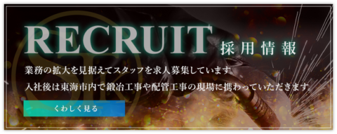 入社後は愛知県内で鍛冶工事や配管工事の現場に携わっていただきます。